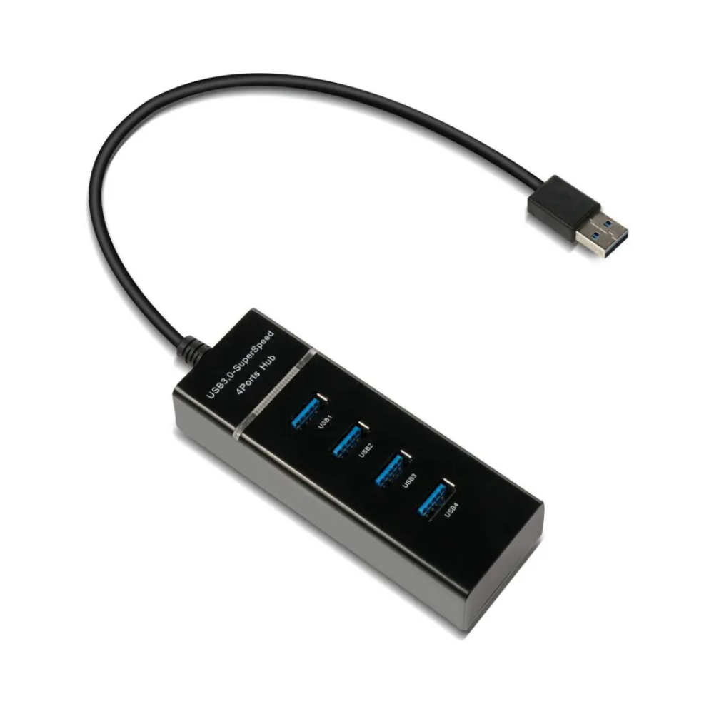 A 4-port USB 3.0 hub can turn one USB port on a computer into four ports for charging and data management. It can support 5Gbps super-speed transmission, which means it can transfer a 1G movie in three seconds.