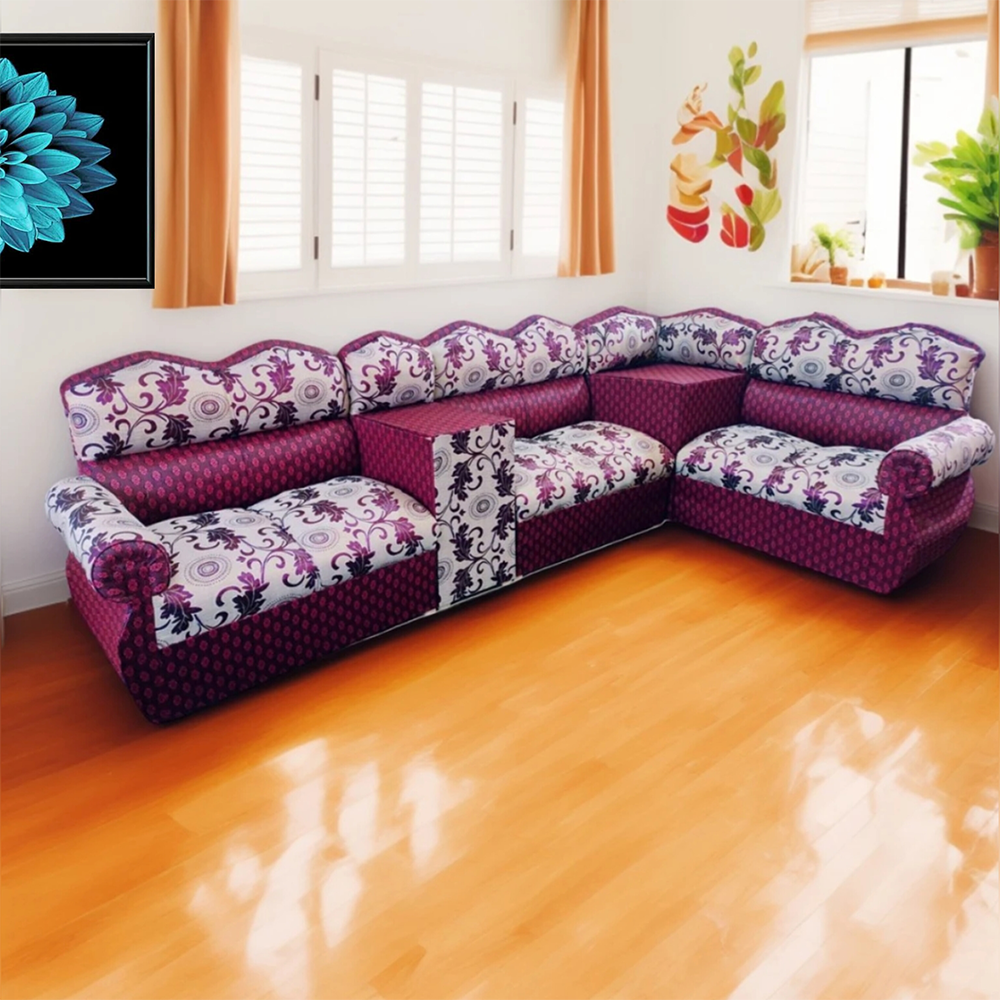 Elegant design is suitable for various interior styles. Comfortable seating for up to six people. High-quality materials ensure durability and longevity. This sofa combines functionality and style, making it a perfect addition to any living space. The six-seater L-shaped corner sofa is designed with a modern aesthetic, transforming the corner of your living room into a stylish focal point. Its soft fabric and plush padded cushioning provide extra comfort, making it ideal for long-sitting sessions. The vibrant colors and sleek lines enhance the decor of your sp Paired with a side table, it forms a functional and contemporary seating arrangement.
