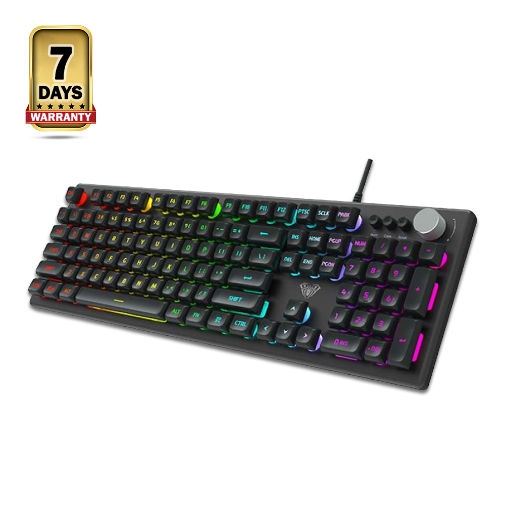 AULA F2028 Rainbow Wired Gaming Keyboard in Membrane. Multi-media shortcut function button design. 3 custom light mode buttons to record lighting effects according to player preferences. More than 10 million times of button lifespan and durable. Rainbow color backlight shows its elegant temperament and humanized function. User-friendly design with a set of shortcut function keys cooperated with Fn Key. Anti-ghosting = 26 keys Aluminum top case.