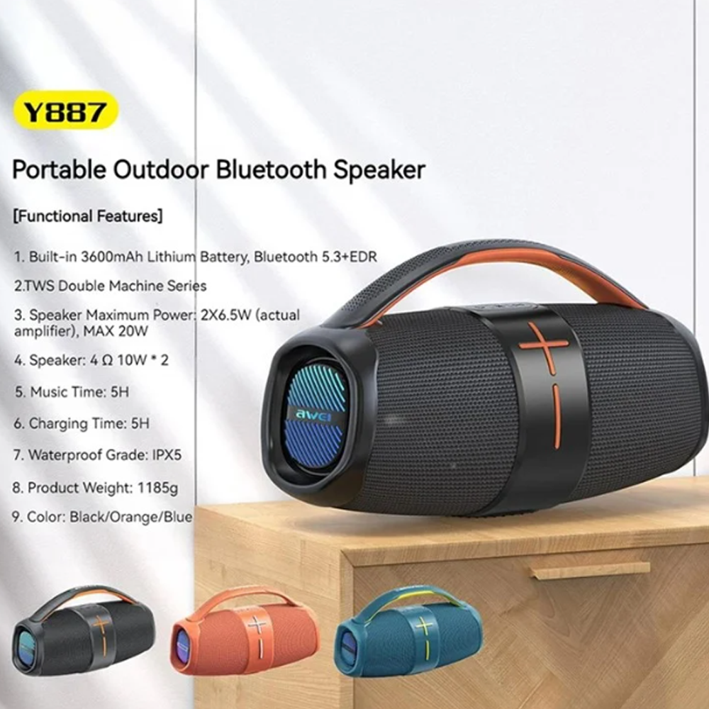 The Awei Y887 Portable Outdoor Bluetooth Speaker is a versatile and durable audio device designed for outdoor enthusiasts seeking quality sound and robust features.