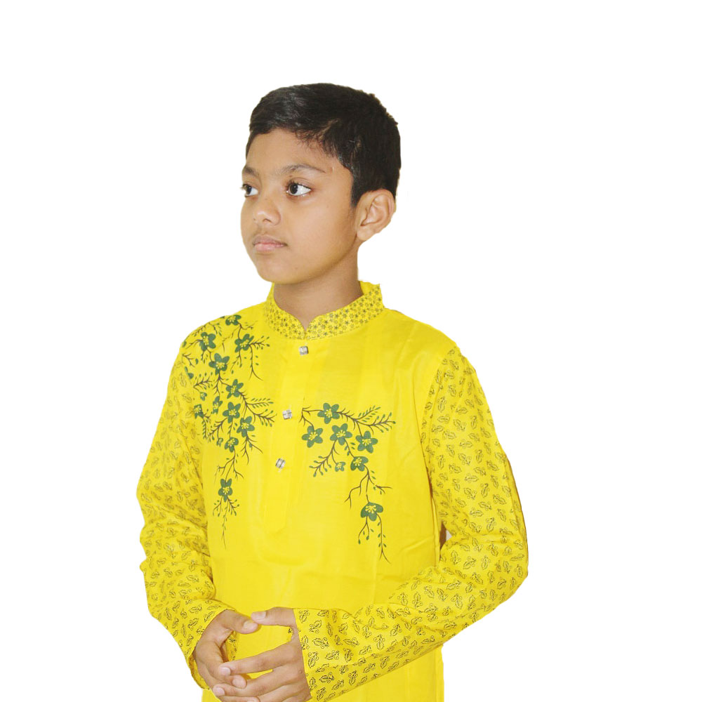 Dupion silk is a luxurious fabric known for its beautiful sheen and rich texture. It's a popular choice for special occasion clothing, including Panjabis for kids. Dupion silk can be delicate, so it's important to choose a Panjabi that fits well without being too tight. You may want to consider sizing up if you're unsure. Fashionable and comfortable for summer. Without Pajama. Measurement 20(1-2 yrs)=chest - 22", Length -20", 22(2-3 yrs)=Chest -24", Length -22", 24(3-4 yrs)=Chest -26", Length -24", 26(4-5 yrs)=chest - 28", Length -26", 28(5-6 yrs)=Chest -30", Length -28", 30(6-8 yrs)=Chest -32", Length -29",, 32(10-12 yrs)=Chest -34", Length -30", 34(13yrs)=Chest -36", Length -32"