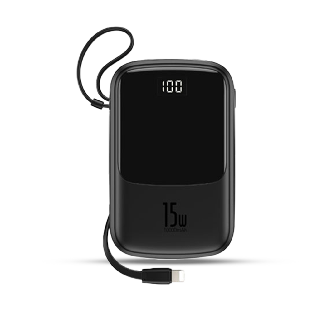 The Baseus Qpow Digital Display 15W Power Bank with Lightning Cable is a portable charger that provides fast and convenient charging for your electronic devices. It has a capacity of 10000mAh, which is enough to charge most smartphones multiple times, and is compatible with a variety of devices that support USB charging. The power bank features a stylish and compact design, with a sleek aluminum alloy case that is both durable and lightweight. It has a digital display screen that shows the remaining power level, as well as an LED light that can be used as a flashlight in emergency situations.