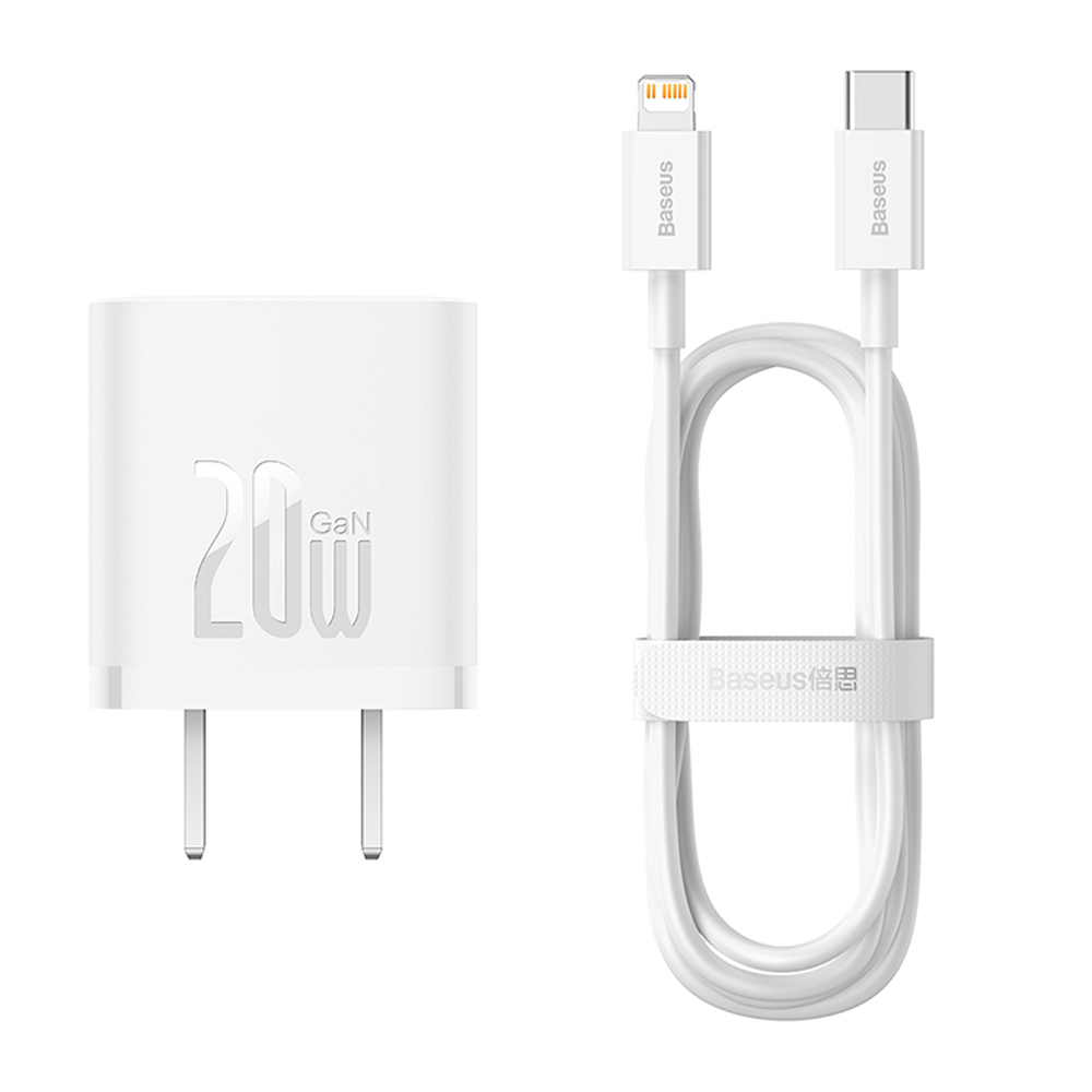 The Baseus GaN 5 Adapter with Type-C to Lightning Cable - 20W - Black is a great option for anyone looking for a fast and reliable way to charge their iPhone or iPad. It uses GaN 5 technology, which is more efficient and compact than traditional charging adapters. This means that the adapter is smaller and lighter, making it easy to carry with you on the go.