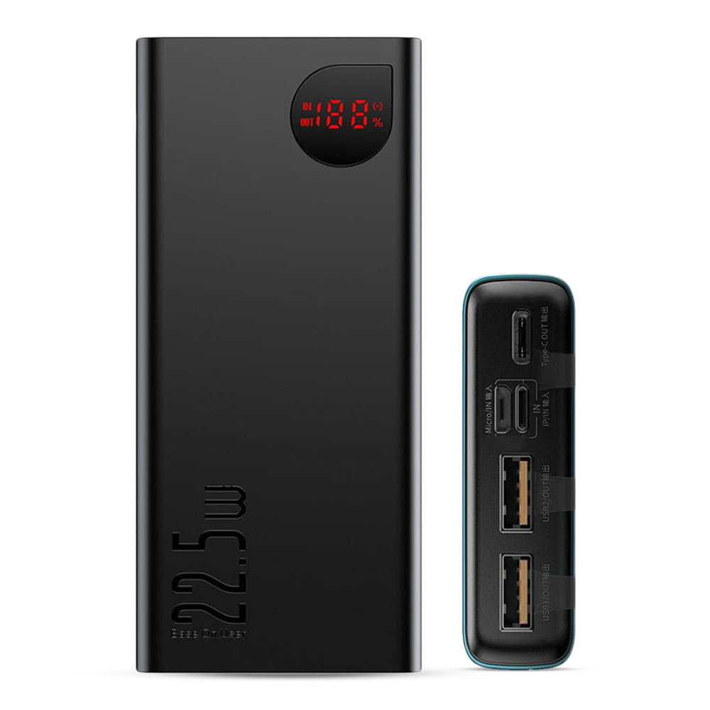 The Baseus 22.5W 20000mAh Quick Charge Power Bank with Digital Display is a high-capacity portable charger designed to provide fast and efficient charging for mobile devices. It features a 20000mAh battery that can charge most smartphones multiple times and a 22.5W power output that enables fast charging for compatible devices. The power bank also includes a digital display that shows the remaining battery level, so you can easily monitor the charging status. Its compact and lightweight design makes it easy to carry, and it comes equipped with multiple safety features to protect against overcharging, overheating, and short-circuiting. The Baseus 22.5W 20000mAh Quick Charge Power Bank with Digital Display is a reliable and convenient power solution for anyone on the go.