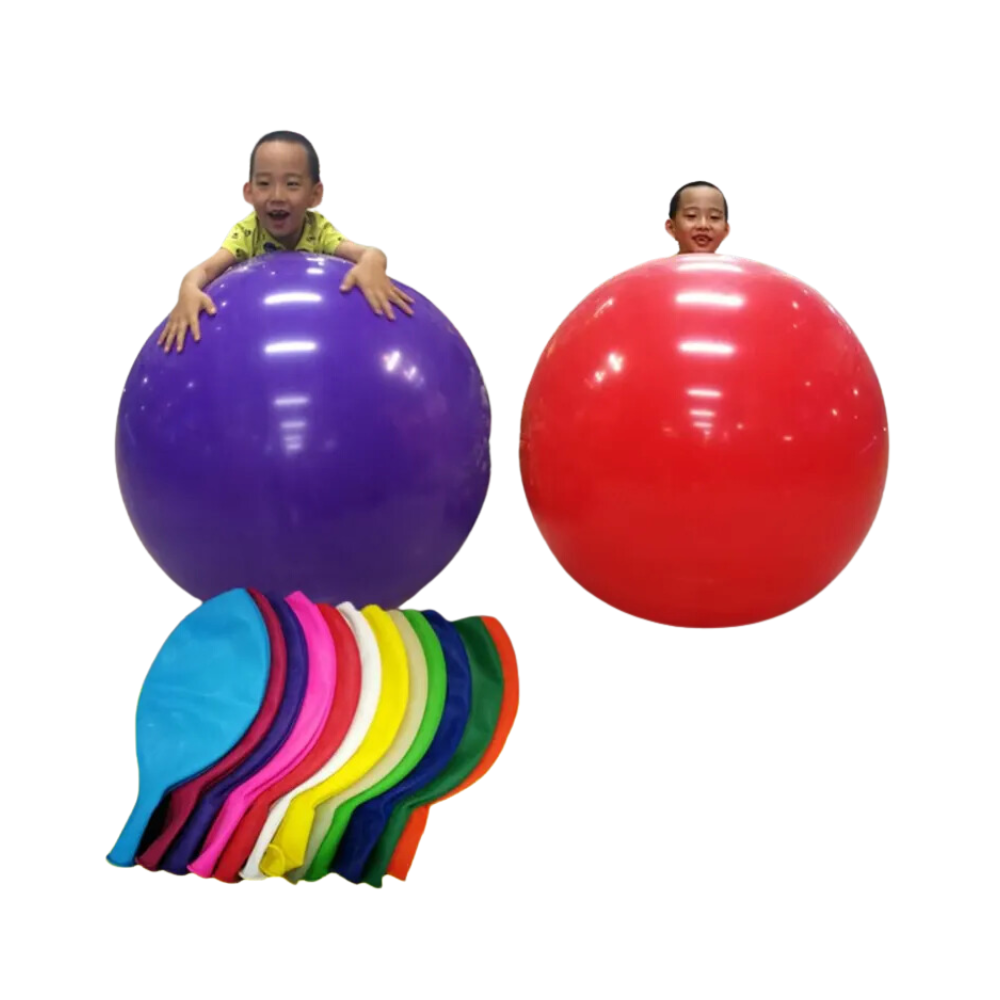 Big balloons are made of fabric and are used for many purposes, including indoor and outdoor decorations. They are thicker and stronger than typical balloons, and can be filled with air, helium, or both. Big balloons can be 20 cm in height before being inflated, and can grow to 60 cm (24 in) when inflated.
