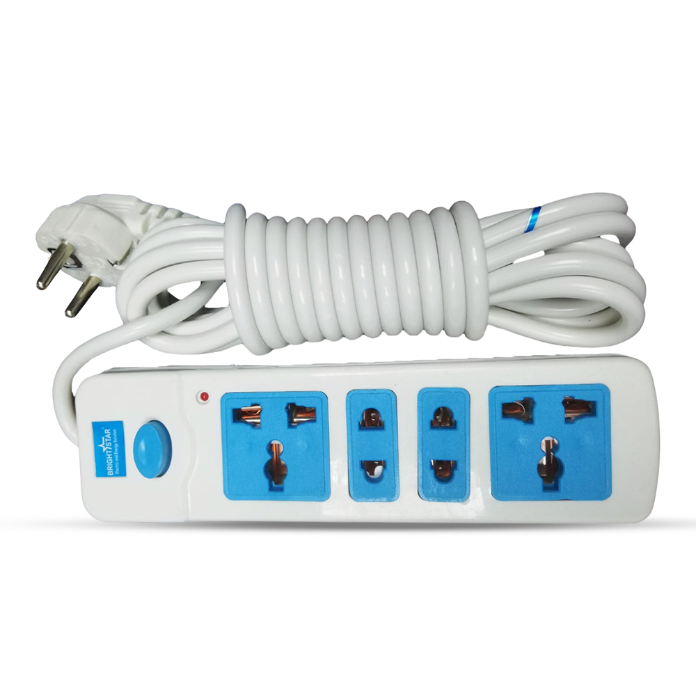 Introducing the Bright Star Multi Socket 5-port with an extended 5-meter cable, model 204, meticulously crafted by Brightstar to meet your diverse electrical requirements. With four ports, it offers ample connectivity options for various devices. Operating at a rated voltage of 250V and current of 10A, it ensures dependable power delivery at a frequency of 50Hz. The main single switch allows for effortless control, while the power indicator light provides visual feedback on its operational status. Inside, a copper bar connection ensures steadfast performance, while the PC body materials guarantee durability. The highly elastic phosphor bronze terminals securely accommodate plugs from all countries, enhancing its versatility. Engineered with a 4-pin socket design to prevent electricity leakage, it prioritizes safety during operation. Beyond its functionality, its stylish design adds a touch of elegance to any space, making it both practical and visually appealing.