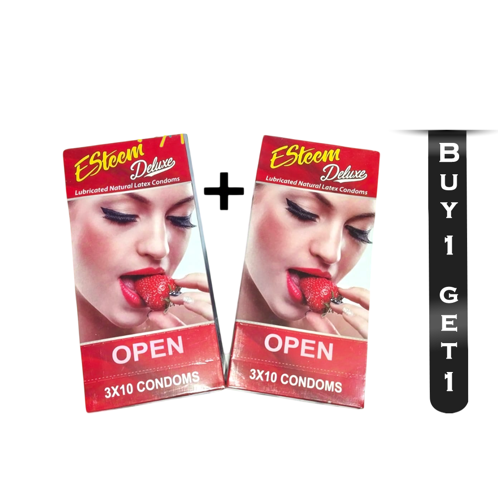 Product details of Esteem Deluxe Lubricated Natural Latex Condoms Strawberry With & Banana Flavor Condom (Buy One Get One Free) 1+1=2 Box 60 Pcs Condom