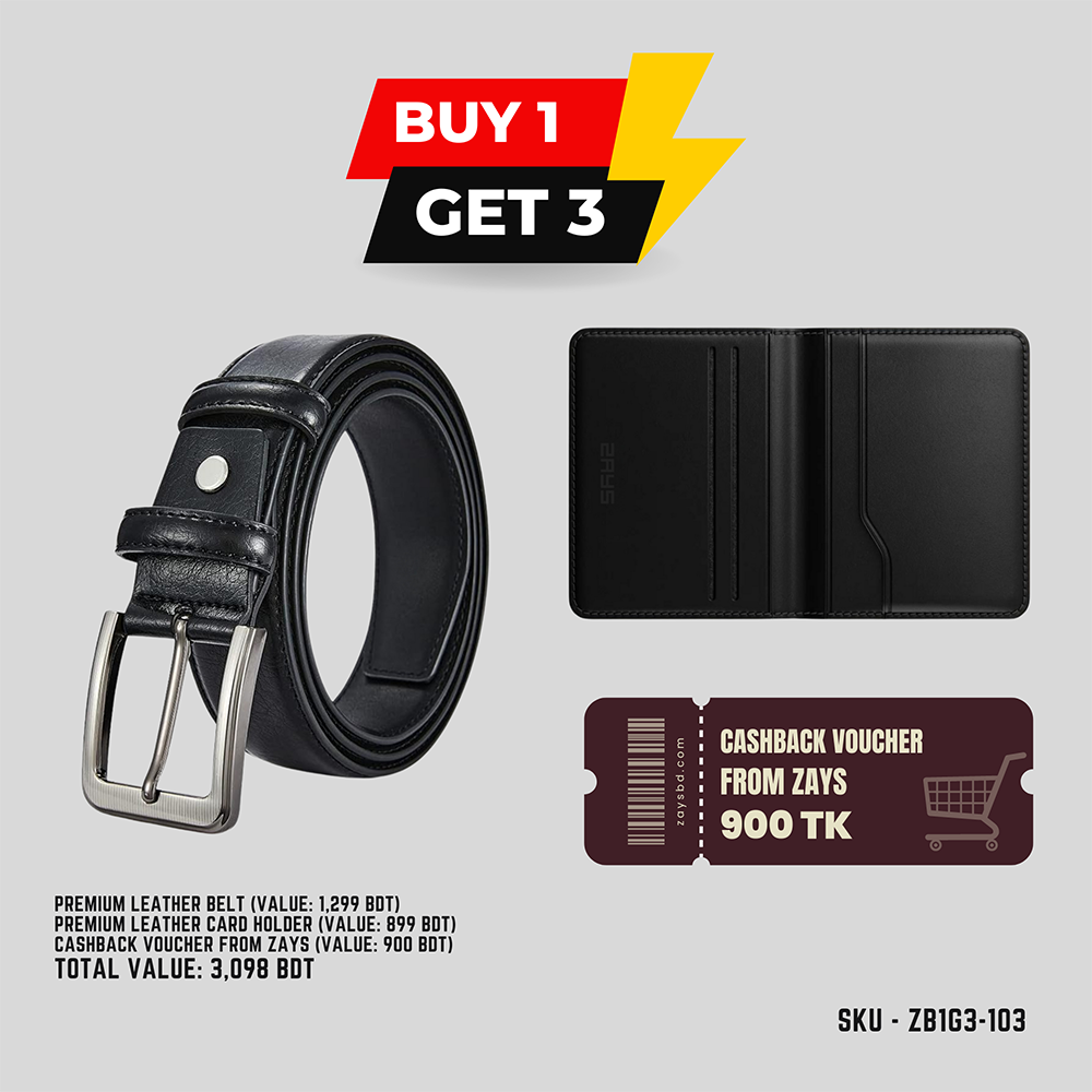 Take advantage of ZAYS's Special ZB1G3 Offer and upgrade your style with premium quality leather accessories! For a limited time, when you purchase a premium leather belt, you will receive not only a stylish Leather Card Holder Wallet but also a 900 BDT cashback voucher for free. This exclusive deal is perfect for anyone who values both luxury and savings.