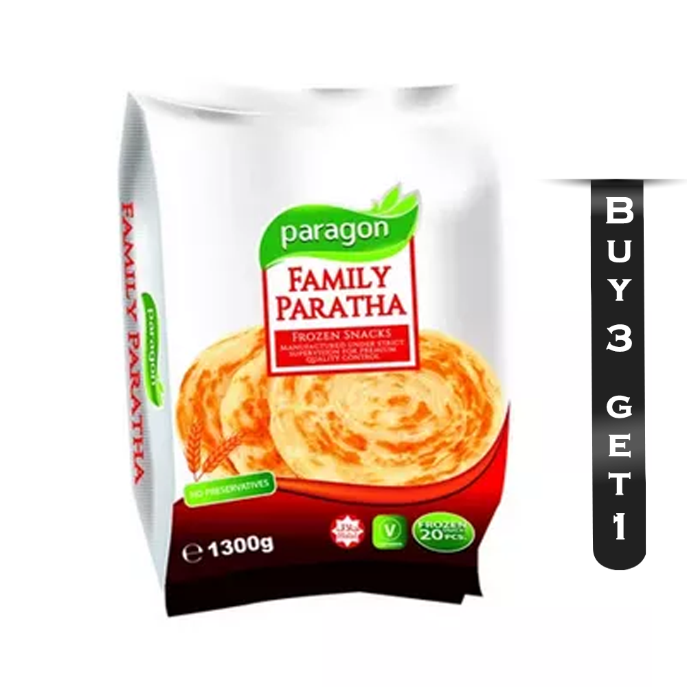 Paragon Family Paratha is a frozen flatbread made from high-quality wheat flour, offering a soft yet crispy texture when cooked. This ready-to-cook paratha is perfect for quick meals or snacks, delivering authentic homemade flavor. It is convenient for families, as it comes pre-rolled and only requires minimal cooking time. The pack contains 1300 grams, which includes 20 parathas. Each paratha is portioned for individual serving, making it a family-sized pack suitable for multiple meals. Ingredients: The main ingredients usually include: - Wheat flour - Water - Vegetable oil (or ghee) - Salt - Sugar - Optional: Milk solids, spices, or preservatives (varies by flavor and brand) Uses: Quick Meals: Serve as a side with curries, dal, or pickles. Breakfast: Pair with yogurt, butter, or chutney. Snacks: Wrap with veggies, paneer, or chicken for a quick roll. Kids’ Lunch: Use as a base for wraps or stuffed paratha recipes. Creative Dishes: Cut into strips for making paratha noodles or bake for crispy paratha chips.