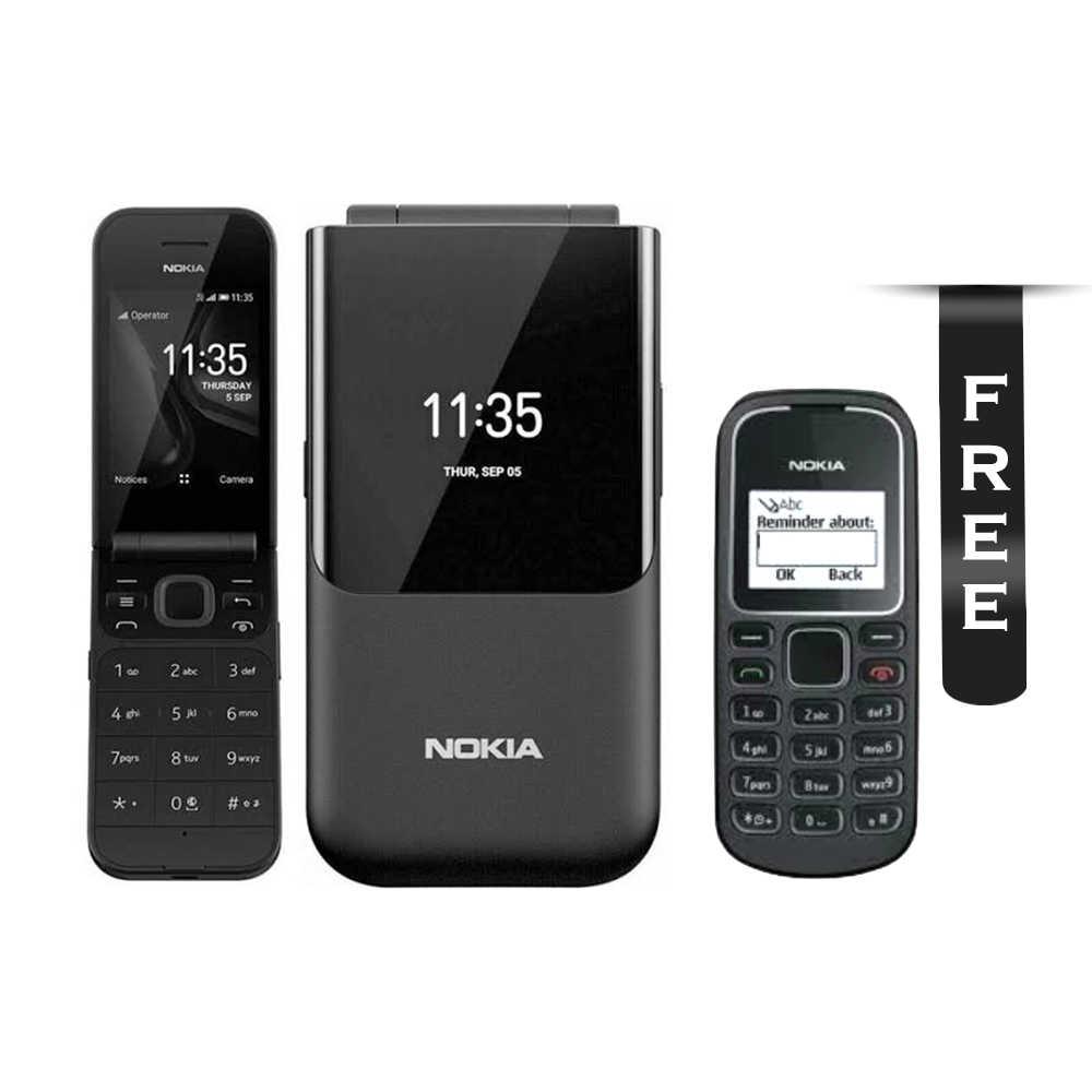 Buy the stylish Nokia 2720 Flip and get a Nokia 1280 feature phone absolutely free. A perfect combo of modern convenience and classic reliability in one offer.