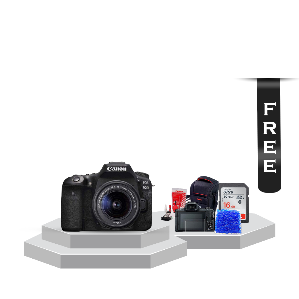 The EOS 90D is built around a 32.5MP APS-C sensor that gives lenses 1.6x the telephoto reach they would have on a full-frame camera. Great for those times when you need to be right in amongst the action. Full-resolution pictures from the 32.5-megapixel EOS 90D can be cropped, rotated, and resized with image quality detailed enough for large prints. Find scenes within a scene and adjust your composition for the perfect result. The EOS 90D has a bright, approx.100% coverage optical viewfinder that lets you view the action as it happens and makes it easier to track fast-moving subjects, such as birds in flight. The EOS 90D is the latest in a long line of DSLRs from Canon, each one a refinement and evolution on the last. This re-assuring yet customizable design feels instinctive from the moment you pick it up – controls fall perfectly under fingers and thumbs and the camera is very well balanced with both long telephoto and short, wide-angle lenses from Canon's extensive range of optics. Built-in Bluetooth and Wi-Fi add another dimension to your creativity. The EOS 90D works together with smart devices running the Canon Camera Connect app* to make it easy to share images via messaging and social media. It is also possible to control the camera remotely, for alternative viewpoints. The EOS 90D is a superb filmmaking tool, with the ability to shoot resolutions up to 4K and frame rates up to 120p in Full HD mode. Our superb Dual Pixel CMOS AF focusing system keeps things looking sharp and cinematic. Microphone and headphone connections let you capture a soundtrack that is every bit as good as the imagery.