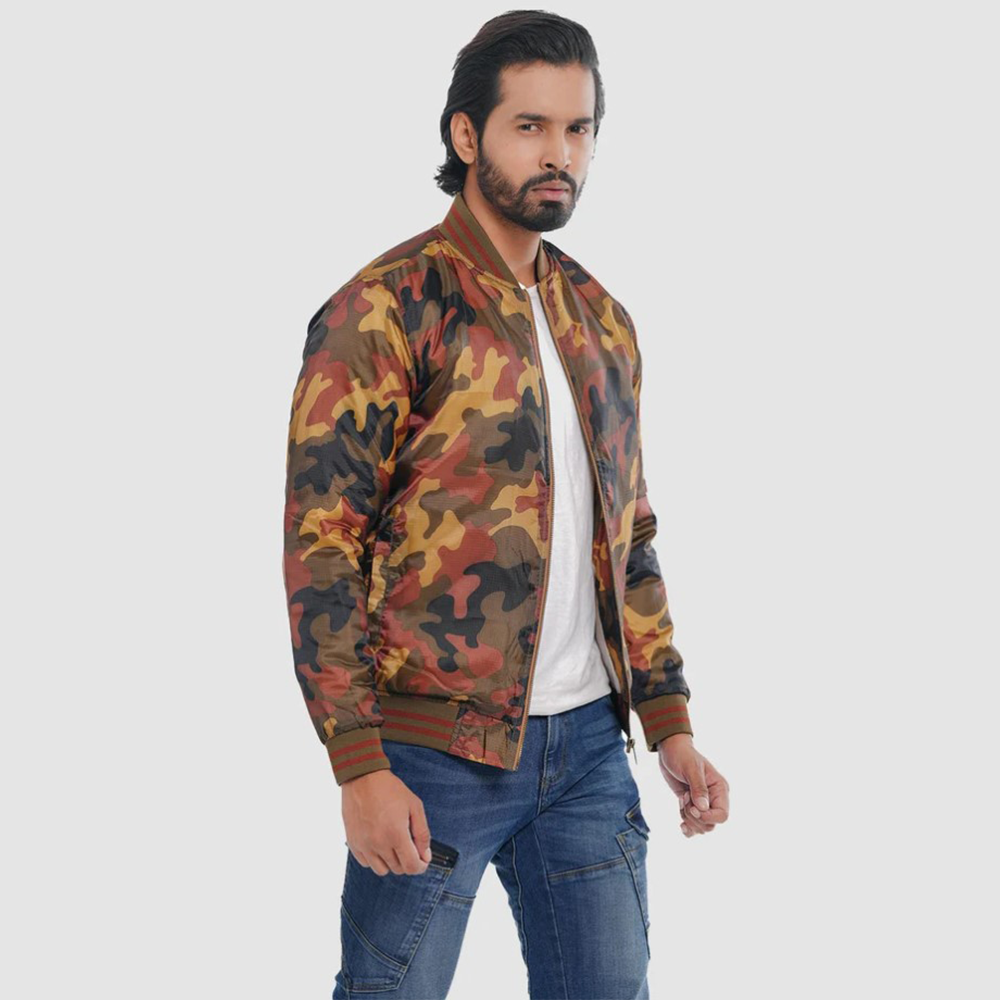 Discover the perfect blend of style and comfort with our Men's Casual Bomber Jacket in Brownish Camo. Made from premium taffeta fabric, this jacket features a sleek metallic zipper and padded inner lining for warmth. The ribbed cuffs, collar, and bottom hem add a stylish finish to this classic design. Stay warm and stylish.