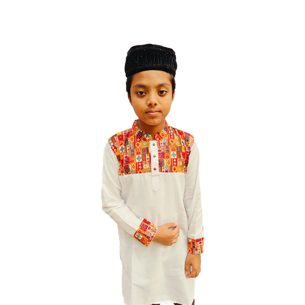 Dupion silk is a luxurious fabric known for its beautiful sheen and rich texture, making it a popular choice for special occasion clothing, including combined Panjabis for kids. These Panjabis often combine dupion silk with other fabrics like cotton or linen for added comfort and breathability. Fashionable and comfortable for summer. Measurement 20(1-2 yrs)=chest - 22"", Length -20"", 22(2-3 yrs)=Chest -24"", Length -22"", 24(3-4 yrs)=Chest -26"", Length -24"", 26(4-5 yrs)=chest - 28"", Length -26"", 28(5-6 yrs)=Chest -30"", Length -28"", 30(6-8 yrs)=Chest -32"", Length -29"",, 32(10-12 yrs)=Chest -34"", Length -30"", 34(13yrs)=Chest -36"", Length -32"","