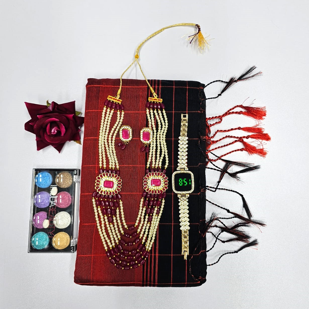 A Sharee + Watches + Necklace Set + Makeup Box + Flowers Combo is a fantastic gift idea, perfect for occasions like birthdays, anniversaries, weddings, or festive celebrations.