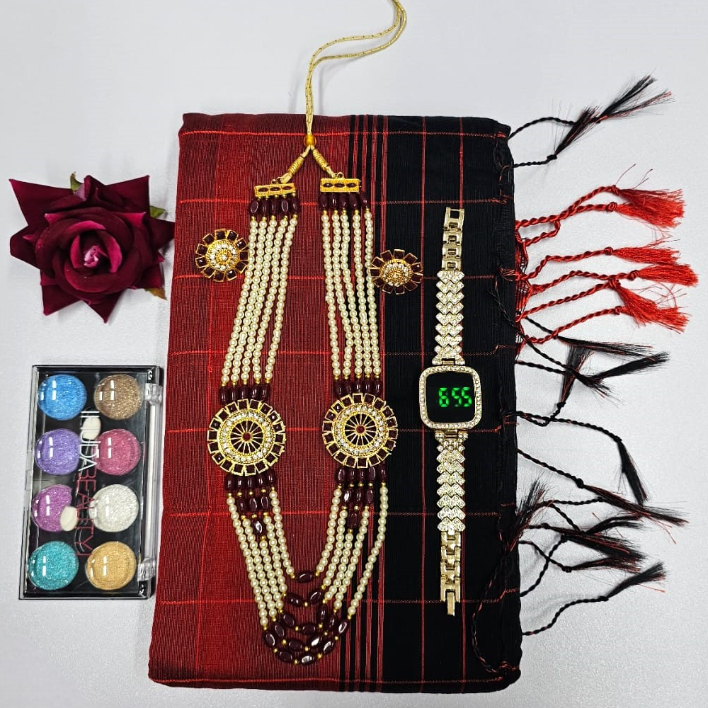 A Sharee + Watches + Necklace Set + Makeup Box + Flowers Combo is a fantastic gift idea, perfect for occasions like birthdays, anniversaries, weddings, or festive celebrations.