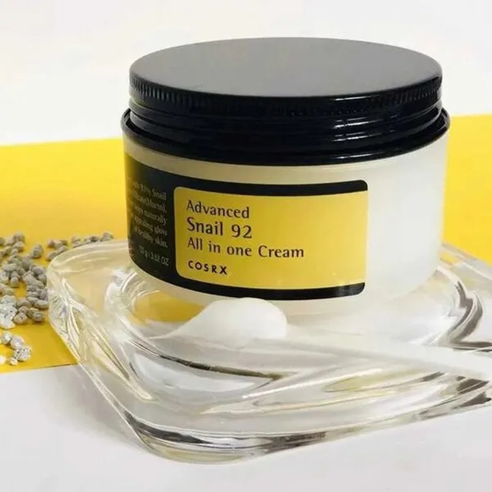 COSRX Advanced Snail 92 All in One Cream is a satiny, lightweight cream formulated with 92% snail mucin and hyaluronic acid to help promote healthy skin repair, replenish hydration levels, soften rough skin, and illuminate tired complexions. Suitable for all skin types, especially dull, dehydrated skin.