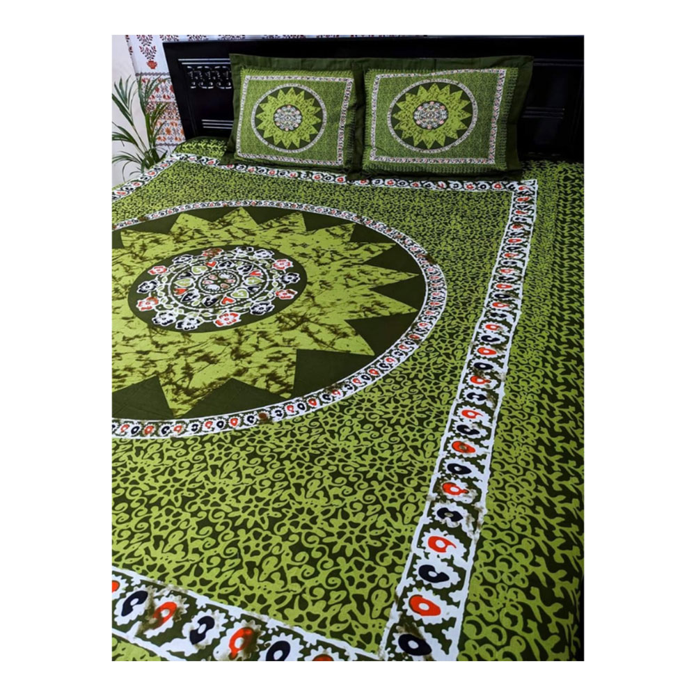 A cotton king-size bedsheet with pillow covers is a bedding set that consists of a large bedsheet and two pillow covers, all made from 100% cotton. Cotton is a soft, breathable, and durable fabric that is ideal for bedsheets, as it helps to keep you cool and comfortable at night.