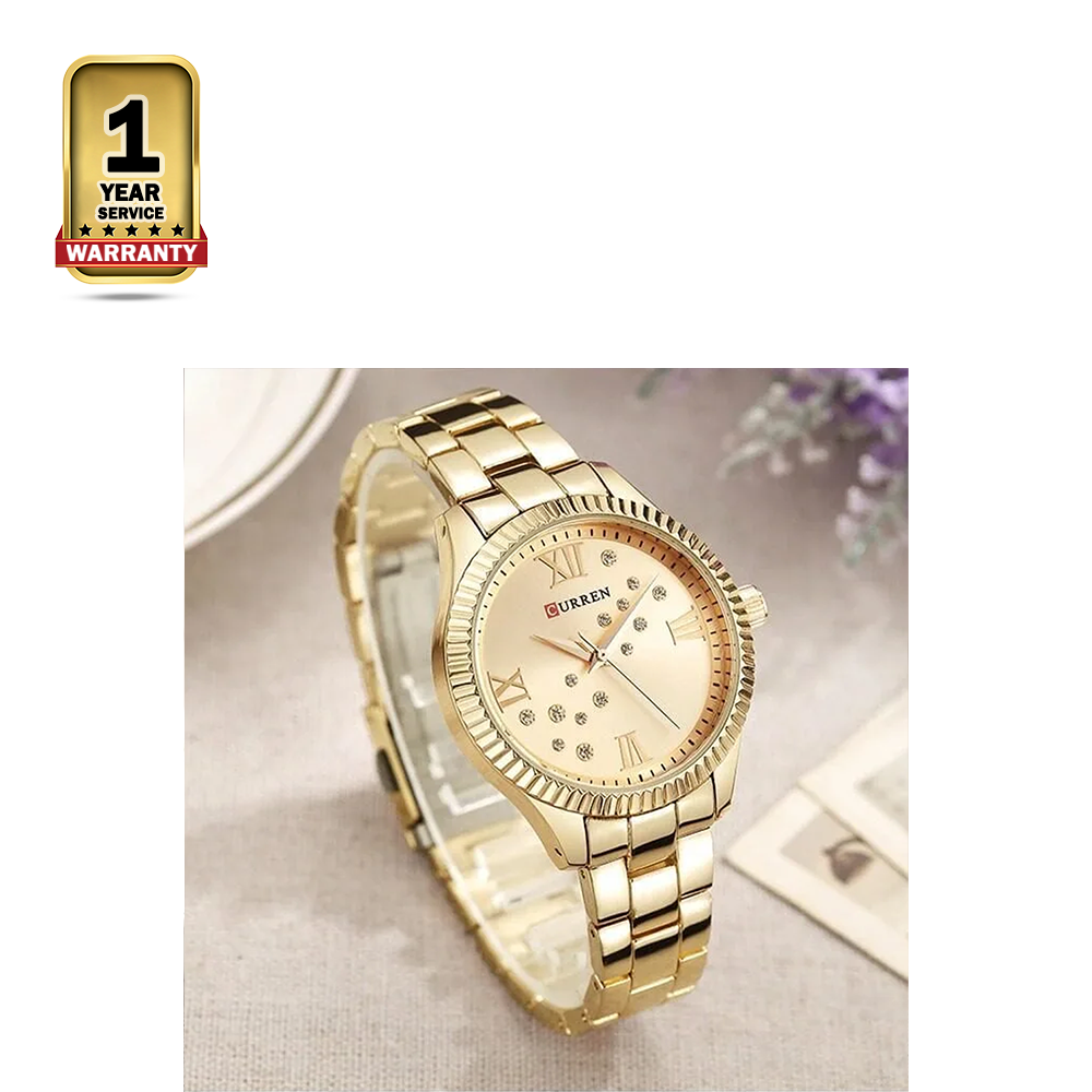 Curren 9009 Stainless Steel Quartz Wrist Watch For Women is a stylish and elegant watch that is perfect for everyday wear. It features a round case with a stainless steel finish.