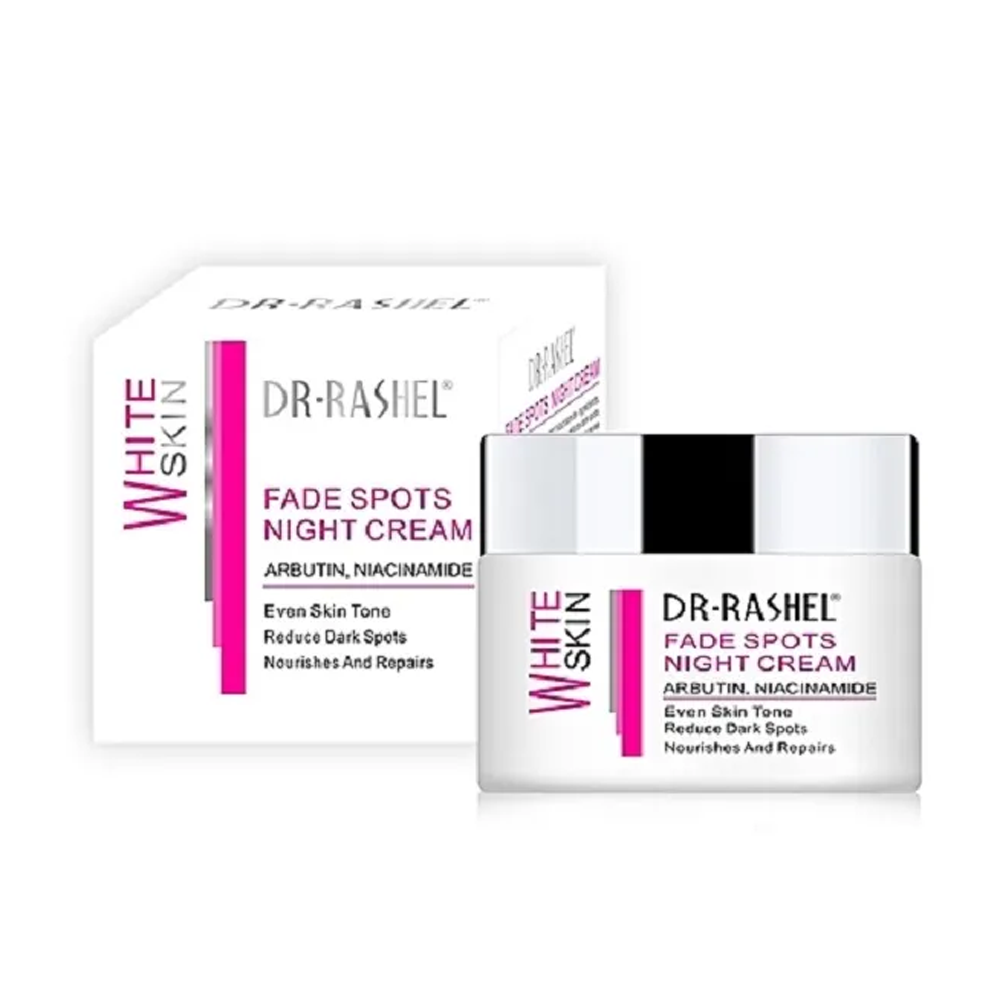 Dr. Rashel Fade Spots Night Cream is designed to be used at night, when the skin is most receptive to repairing and renewing itself. It is suitable for all skin types and can be used on the face and other areas of the body where dark spots and hyperpigmentation are a concern.