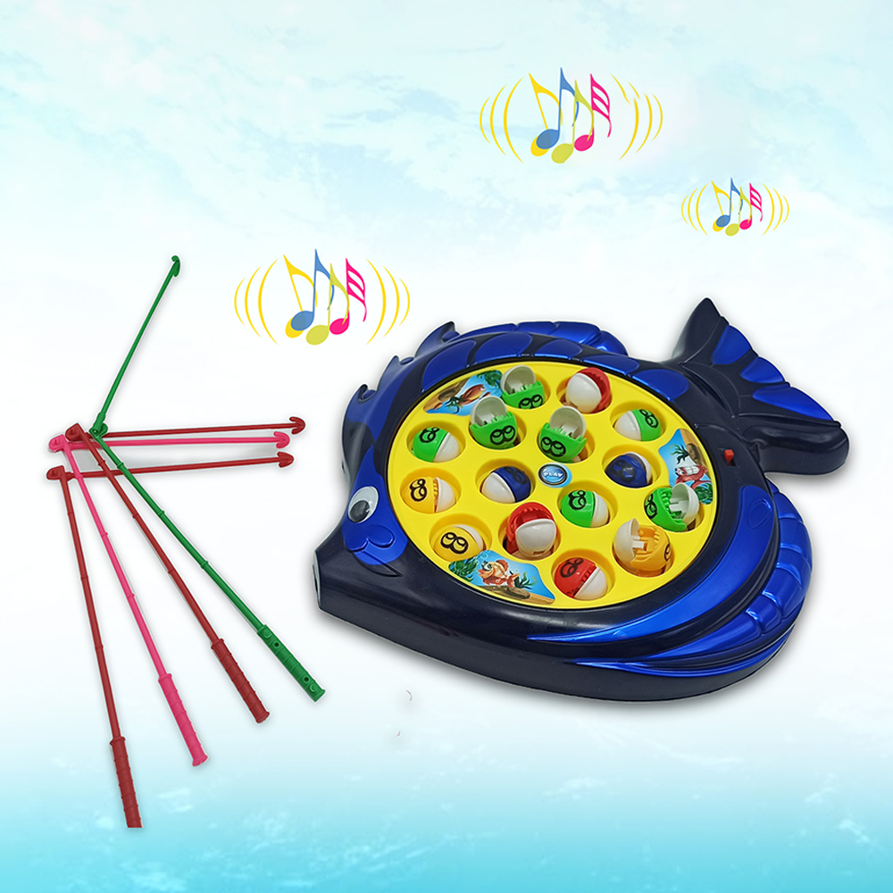 Happy Fishing is a battery-operated music fishing game for kids, a spearfishing game. The game has 15 fish, and 4 fish, and a total of 4 people can play this game. When the switch is turned on, the fish inside will rotate and the fish will open and close their mouths. The one who catches the most fish will be the winner. It will also have music playing during the game. The toy develops children's intelligence and patience. This fishing game can be an enjoyable means of competition for young children.
