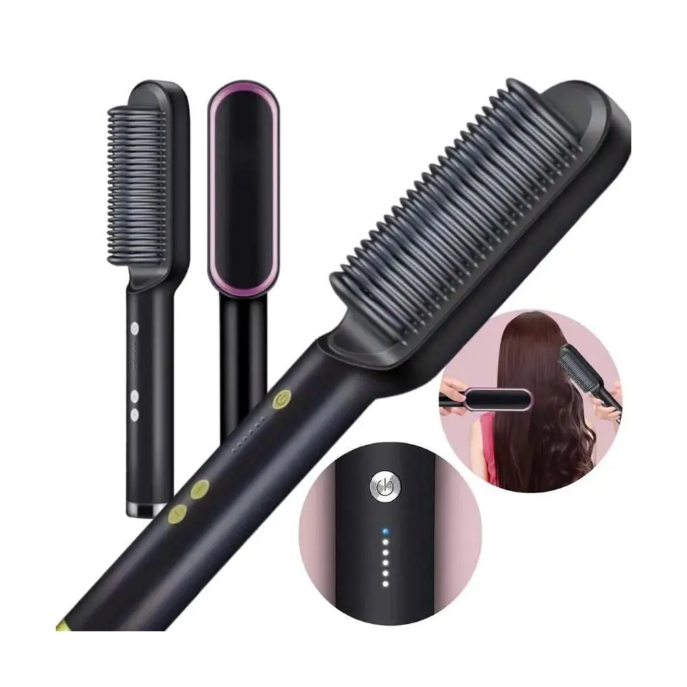 The hair straightening brush was specially developed to make your life EASIER, thanks to its technology that straightens each strand of hair individually and at the same time, without causing damage to the strands, saving you time so you can enjoy your day even more, always looking tidy, with straight and aligned hair quickly and practically, in less than 20 minutes. It has an Exclusive Multiplate Technology, which, during the use of the brush, each strand is divided into 25 parts using PTC ceramic plates with ions, where they are straightened, shaped, and aligned from the root to the ends individually. This process prevents you from running the brush through the strand more than once, ensuring straight and aligned hair in just one pass!