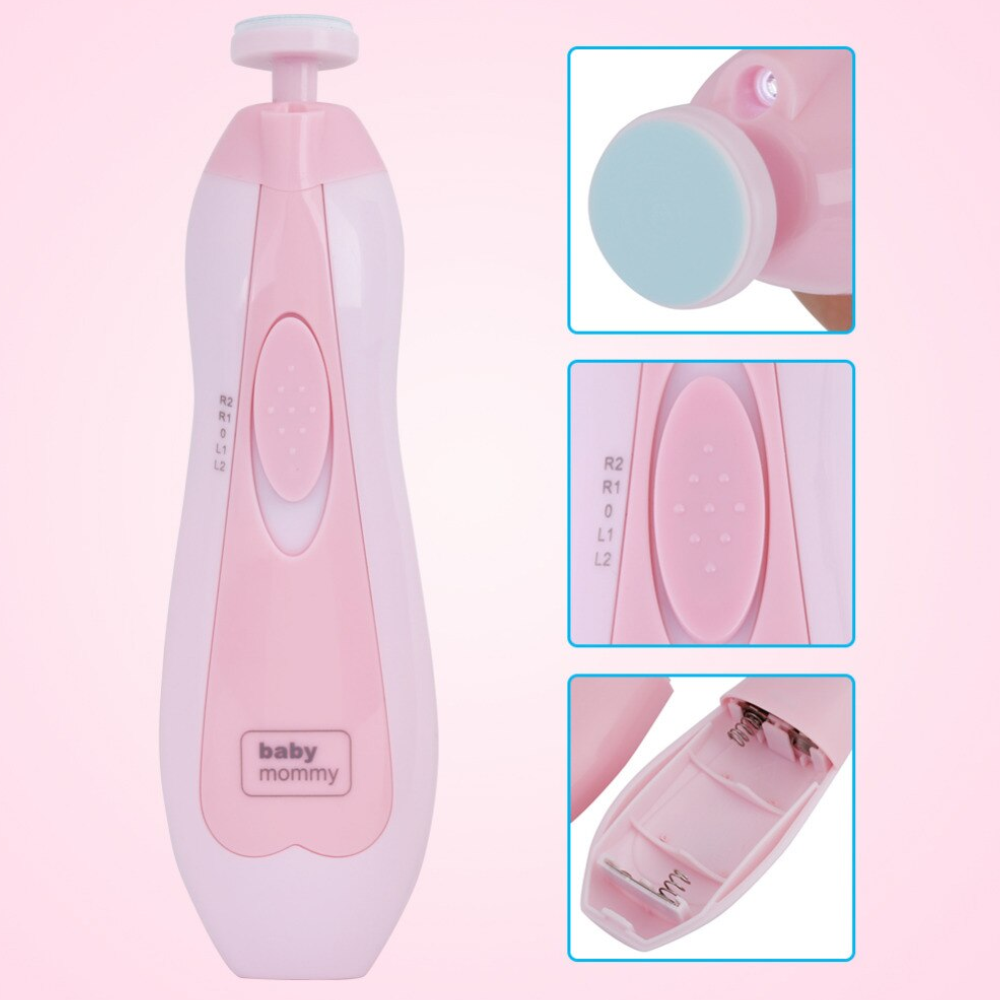 This is a battery operated nail trimmer that safely files tiny nails without harming surrounding skin. It is perfect for the newborn to 2 years old babies, and it will help to trim their nails clean and make them feel comfortable. A gentle vibrating action trims your baby's nails and includes two power setting modes for convenient use Made from ABS shell with sand paper friction pads, it is durable in use and will make your baby relaxed while cutting nails compared with the traditional clippers Helps to trim your baby's nails clean and make him feel comfortable Safe and effective electric nail trimmer for newborn to 2 years old baby, or babies to toddlers It is lightweight and easy to carry. With build in battery for a long service time