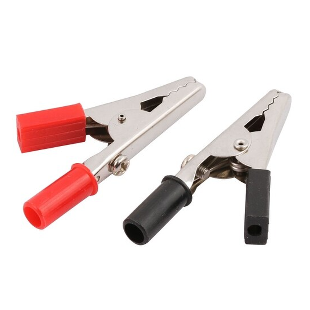 Alligator clips are made of nickel-plated iron material, good electrical conductivity. Sleeves are made of high-quality PVC, high-grade flame retardant, eco-friendly and nontoxic. Crocodile clips are frequently used in school physics laboratories to quickly and cheaply assemble circuits. They are useful for connecting components to wires. Great replacement parts to repair broken leads on test equipment and chargers or make your own low-voltage jump leads. 5Pair- 34mm Mini RED & BLACK Electronic Spices Metal Alligator 34mm Clip Red & Black Plastic Handle Alligator Clips For DIY Kit Clips Test Leads