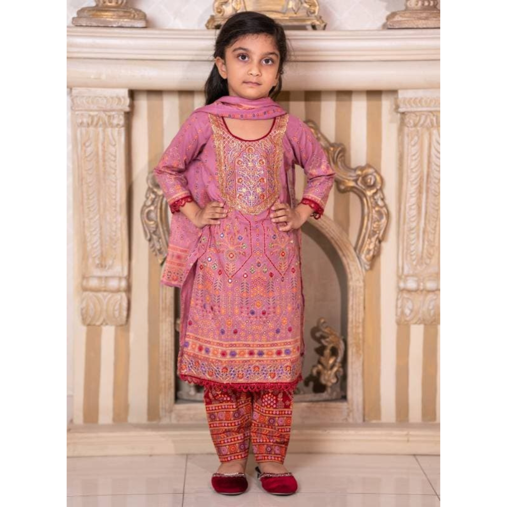 Fabric: Aarong Cotton Work: Skin Print + Embroidery Type: Ready Three Piece Includes: Kameez, Salwar & Orna Occasion: Suitable for daily wear & special occasions