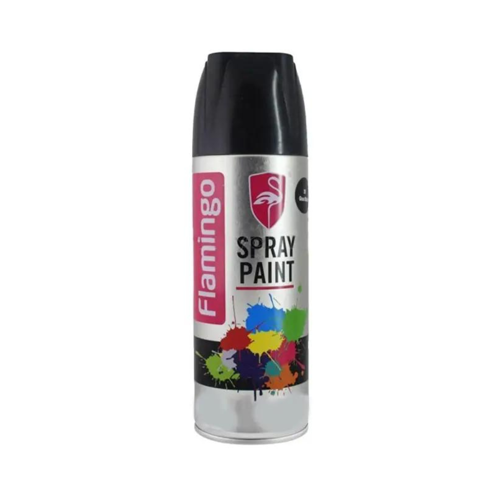 Flamingo Matt Black Spray Paint is a quick-drying spray paint that can be used on metal, wood, glass, ABS plastic, and automotive surfaces. It has a rich color, high luster, and is scratch-resistant. It also resists UV radiation, increases anti-aging performance, and prevents metal surfaces from rusting.