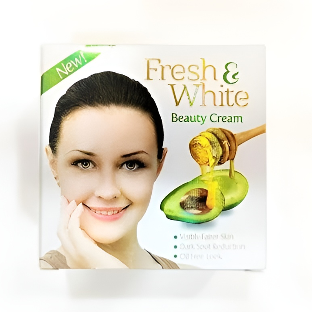 With its powerful formula, Fresh & White Beauty Cream can leave your skin feeling softer, more supple, and comfortable from the first application. It works by fortifying the skin’s natural defenses against external aggressions that can lead to darkening. Over time, our product can help unveil a fairer, more transparent, and even-toned complexion. It may help diminish the appearance of brown spots, pimples, freckles, and dark circles while restoring your skin’s natural qualities.