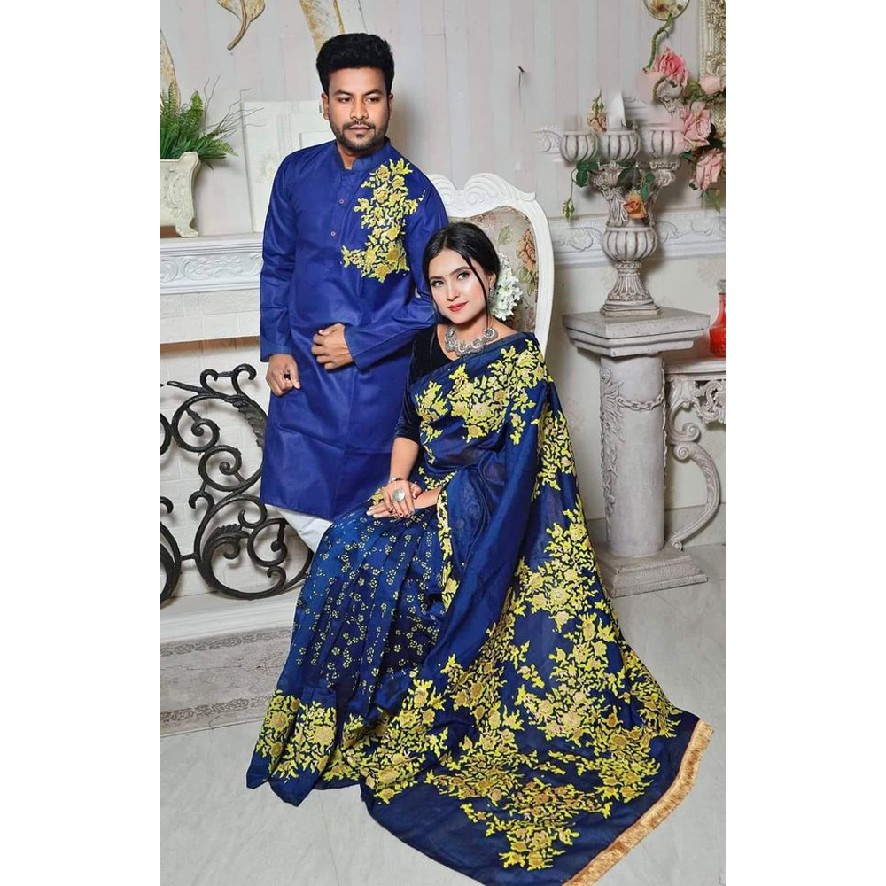 A block print half silk saree is a beautiful and traditional garment that combines the luxurious feel of silk with the intricate designs of block printing. The saree is typically made from a blend of silk and cotton, making it comfortable to wear and drape gracefully. Dupiyan cotton Panjabis are often worn for special occasions,