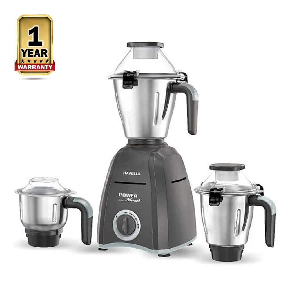 Havells Hunk 800 Mixer Grinder is a mixing device. A handle is mounted over an enclosure containing the motor. The motor drives the beaters which are immersed in the food to perform the mixing action.