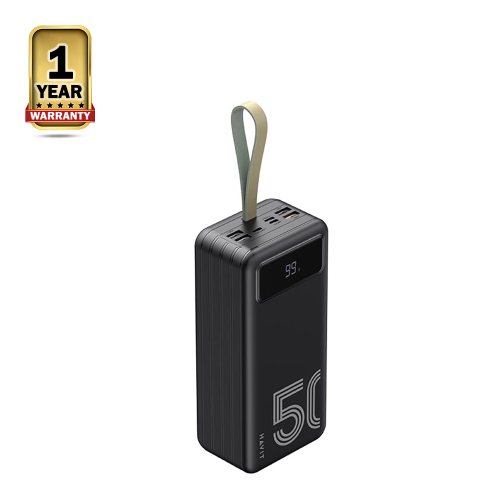 The Havit PB71 Power Bank is a high-capacity portable charger that can charge your devices on the go. It has a capacity of 50000mAh, which can charge most smartphones up to 17 times. The power bank is also equipped with two USB ports and a Type-C port, so you can charge three devices at the same time. It also has a flashlight and a built-in battery indicator.