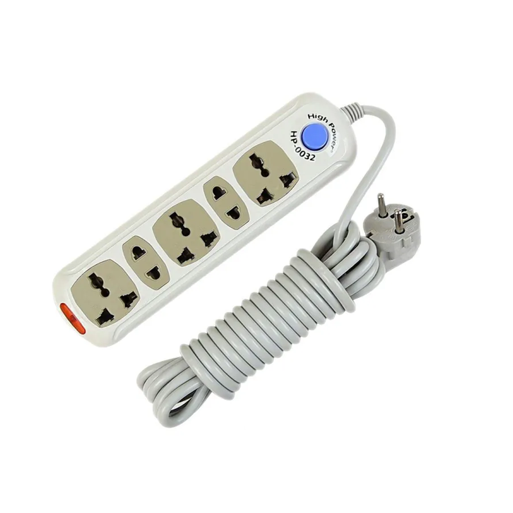 The High Power HP-0032 5 Gang Exclusive Multiplug is a power strip that provides four outlets with a maximum power output of 2500W. It is designed for demanding applications that require more power. Made with thick gauge wire and durable materials to withstand high power demands. Surge protection, overload protection, and a single power switch with an indicator light.