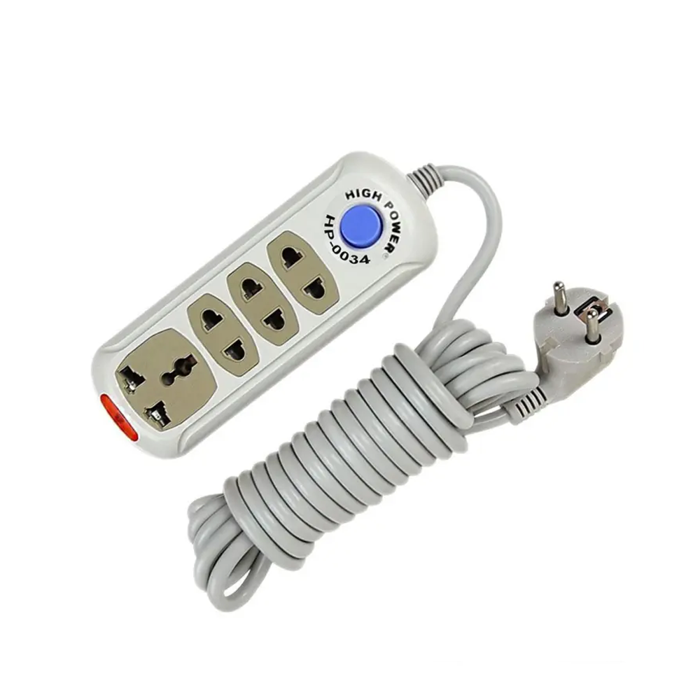 The High Power HP-0034 4 Gang Exclusive Multiplug is a power strip that provides four outlets with a maximum power output of 2500W. It is designed for demanding applications that require more power. Made with thick gauge wire and durable materials to withstand high power demands. Surge protection, overload protection, and a single power switch with an indicator light.
