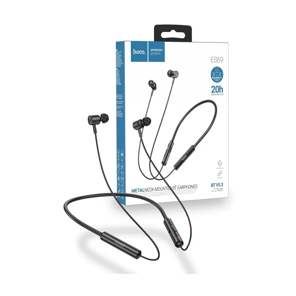 Hoco ES69 Bluetooth 5.3 TWS Wireless Sports Earphones 20 Hours Playtime. Extended Playtime: Enjoy uninterrupted music with these sports earphones featuring an impressive 20 hours of playtime, perfect for extended workouts or daily activities. Wireless Freedom: With Bluetooth 5.3 technology and a stable connection, experience the freedom of movement without compromising audio quality. Comfortable and Secure Fit: The ergonomic design ensures a comfortable and secure fit, while the on-ear hook design adds stability, making them ideal for sports and workouts. High-Fidelity Sound: The 14mm speaker size delivers crisp and high-fidelity audio, allowing you to immerse yourself in your favorite tunes with exceptional clarity. Versatile and Durable: Whether you're at the gym or outdoors, these sports earphones are designed to keep up with your active lifestyle, providing both durability and versatility.