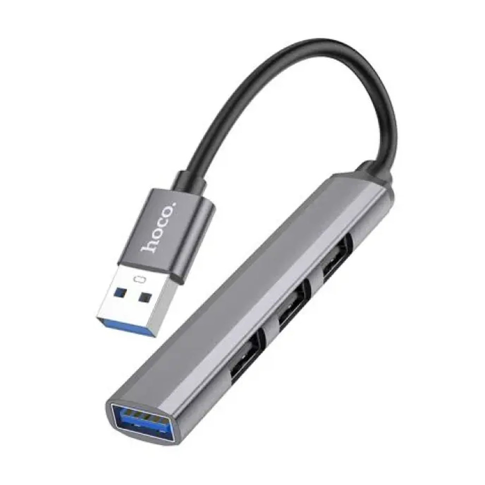Hoco HB26 4-in-1 USB Hub offers USB male to USB3.0*1 female + USB2.0*3 female interface. It is made of aluminum alloy and the size of the hub is 85.05*16.3*8.83mm. It comes with a 13cm long cable and it weighs 24g only. The hub can drive a hard drive with a capacity of no more than 1TB. It works as an extension of USB interface. The Hoco HB26 4-in-1 USB Hub is small and portable due to the unique cost-effective aluminum alloy design.