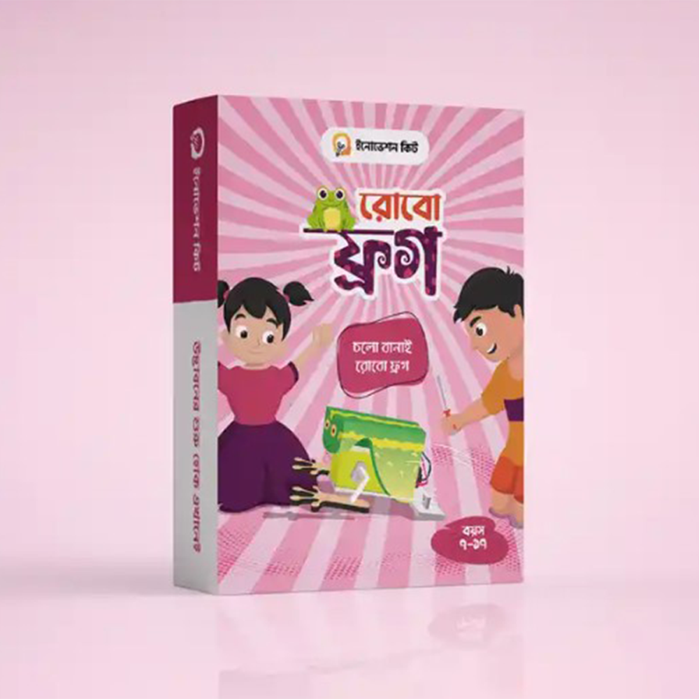 Robots have always been a topic of interest for kids, the Robo Frog is an innovation kit that can be easily built by looking at the 3D manual in the box, giving kids confidence in robotics. With the help of the Robo Frog Kit, they can play with different types of electronics. What is the motor? What is the polarity of the motor? How does the switch work? What is the circuit? They will learn many things like how to make circuit connections with the help of the kit. রোবট শিশুদের জন্য সবসময়ই আকর্ষণীয় একটি বিষয়, রোবো ফ্রগ এমন একটি ইনোভেশন কিট যেটি সহজেই বক্সে থাকা 3D ম্যানুয়াল দেখে তৈরি করা সম্ভব, যা রোবটিক্সের প্রতি বাচ্চাদের করবে আত্মবিশ্বাসী। রোবো ফ্রগ কিটের সাহায্যে তারা খেলার মাধ্যমে পরিচিত হতে পারবে বিভিন্ন ধরনের ইলেক্ট্রনিক্সের সাথে। মোটর কি? মোটরের পোলারিটি কি? সুইচ কিভাবে কাজ করে? সার্কিট কি? সার্কিট কানেকশন কিভাবে দিতে হয় এমন অসংখ্য বিষয় তারা জানতে পারবে কিটটির সাহায্যে।