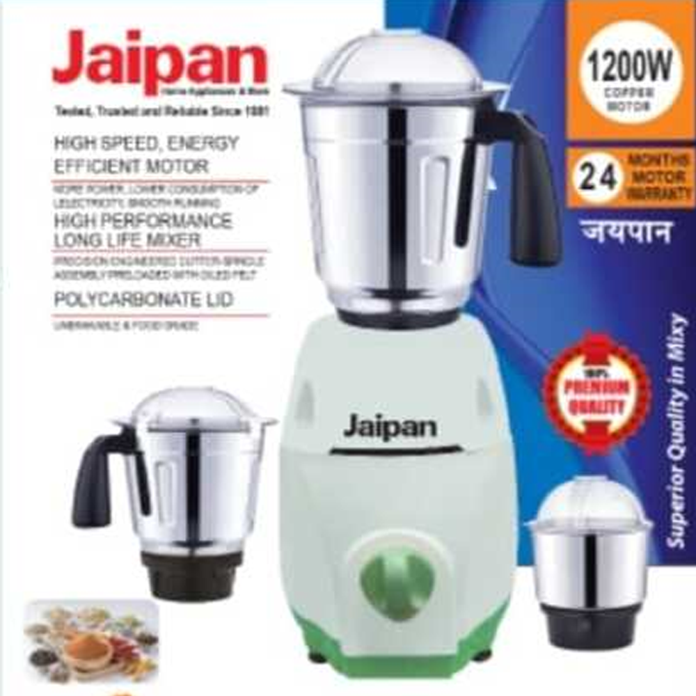The Jaipan Kitchen Master 3-in-1 Mixer Blender is designed to make your kitchen work effortless. Powered by a 1200W 100% copper motor, it ensures powerful grinding, mixing, and blending. With its durable build and multipurpose design, it’s the perfect partner for everyday cooking.