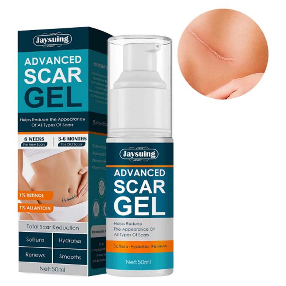 The Jaysuing Advanced Scar Gel helps improve skin health, firmness, and elasticity. It is formulated with allantoin which smoothes and evens the skin. It can remove invasive surgical scars and scar cream gel needs to be applied to the scar twice a day until smooth skin is achieved. Moreover, it can reduce the size of pregnancy scars, acne scars, surgical scars, and 3-6-month-old scars. Reusable Long-Lasting Cuts Fat Lines Scar Pregnancy Empyrosis Scarface Total Scar Reduction Softens Hydrates Renews Smooths 1% Retinol 1% Allantoin 8 Weeks For New Scars 3-6 Months For Old Scars
