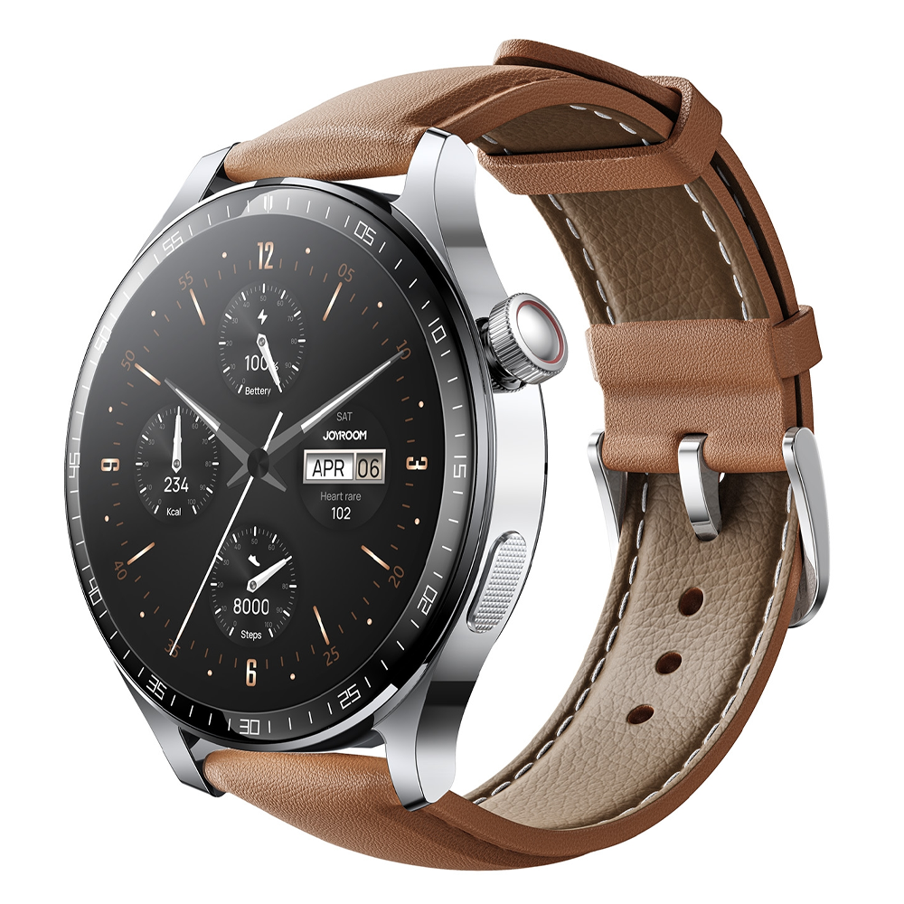 48mm round watch, 1.46” large screen, ultra-high screen-to-body ratio, enjoy the perfect view Clearer on-wrist calling with JOYROOM's self-developed call noise reduction technology, which makes calls clear even in a noisy environment 2.5D high transparency tempered glass, 360*360 resolution, 10% higher brightness & contrast compared to FC2, more detailed display effect 350mAh large capacity, battery life of up to 12 days, keeps you worry-free on business trips ATM water resistance withstands immersion in water up to 10m for 30min, perfect for everyday use 120 sports modes, covering a variety of common sports scenes, auto recognition of outdoor running, indoor running, and brisk walking; rich sports modes, accurate sports data, all for a healthy life