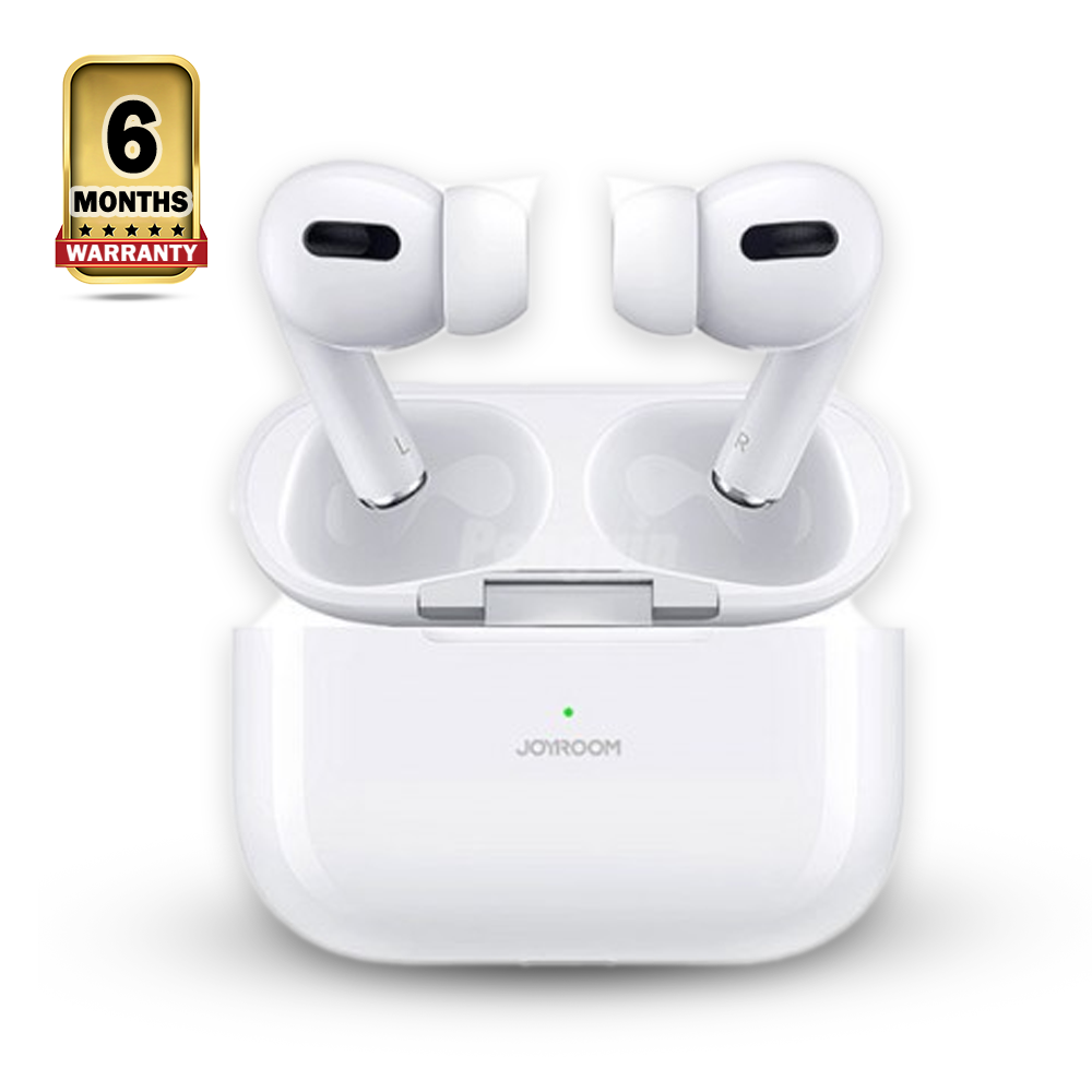 Joyroom JR-T03S Plus TWS Bluetooth Earbuds White features: Long play time 6hours, Support magnetic wireless charging, IPX5 waterproof, Waterproof & sweatproof, True light sensing IC detection and BT V5.1, instant connection open case & pair automatically. Its Product size (charging box): is 44x22x53.8mm, Product's net weight: is 48g+/-2g. It also features 120 hours of standby, 5 hours of binaural listening, up to 24 hours total listening time with case, Polymer composite diaphragm moving coil speaker, outstanding instrument details, free to enjoy Hi-Fi sound effects & it Connect after opening the shell, touch technology, comfortable to wear. Joyroom JR-T03S Plus TWS Bluetooth Earbuds.