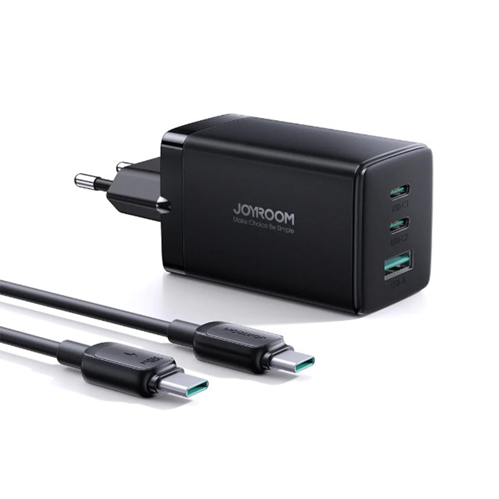 The Joyroom JR-TCG01 Gan Ultra Fast Charger in black is a powerful and efficient charger for your devices. This charger features a unique gun-shaped design with a comfortable grip and a sleek black finish. The Joyroom JR-TCG01 Gan Ultra Fast Charger is equipped with Quick Charge 3.0 technology, which enables you to charge your devices up to four times faster than standard chargers. It also features a USB Type-C port and a USB-A port, allowing you to charge two devices simultaneously.