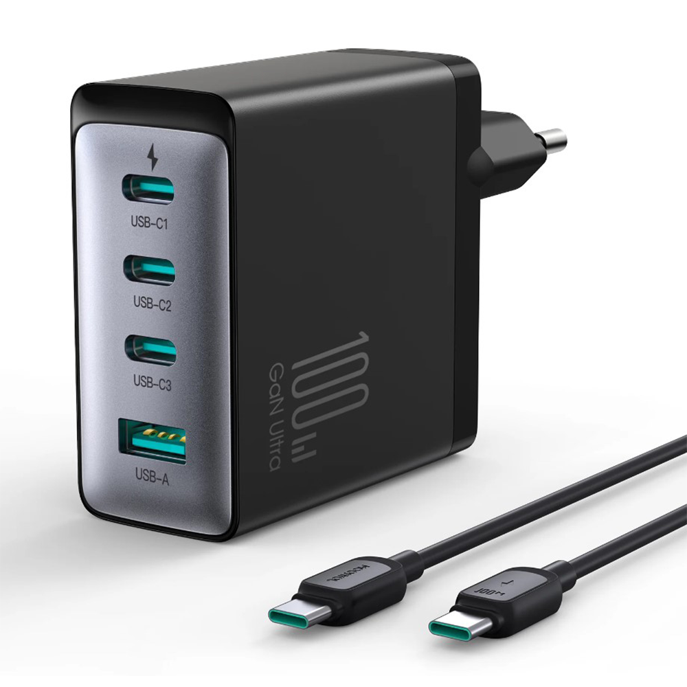 The Joyroom JR-TCG04 GaN Ultra 3C1A Fast Charger EU - 100W - Black is a powerful and versatile charger that can quickly charge a variety of devices. With a total output of 100W, this charger can juice up your devices very quickly. It supports various fast charging protocols like PD3.0, PPS, QC3.0, Samsung AFC, and Huawei FCP/SCP, ensuring compatibility with a wide range of smartphones, tablets, and even laptops.