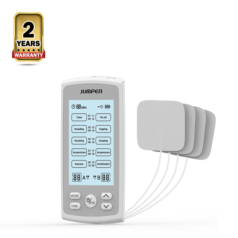 The Jumper JPD-ES220 Tens Therapy Massager Device is a dual-channel TENS unit that provides relief from pain and muscle tension. It features 20 pre-programmed massage modes and 20 levels of intensity, so you can customize your treatment to your specific needs. It is also rechargeable, so you can use it anywhere without having to worry about running out of batteries. It also comes with a carrying case for easy portability.