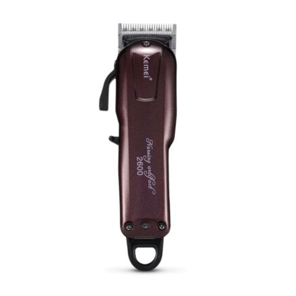The Kemei KM-2600 Cordless Hair Clipper for Men in maroon is an efficient grooming tool designed for easy hair cutting and trimming. Its compact design and maroon color make it a stylish addition to any grooming kit. The clipper uses a powerful motor and sharp blades to provide a clean and precise cut every time. It comes with adjustable comb attachments for different hair lengths and styles, allowing you to achieve your desired look with ease. The clipper is cordless and operates on a rechargeable battery, providing up to 90 minutes of continuous use on a single charge. This makes it convenient for travel and use on-the-go, without worrying about cords and power outlets.