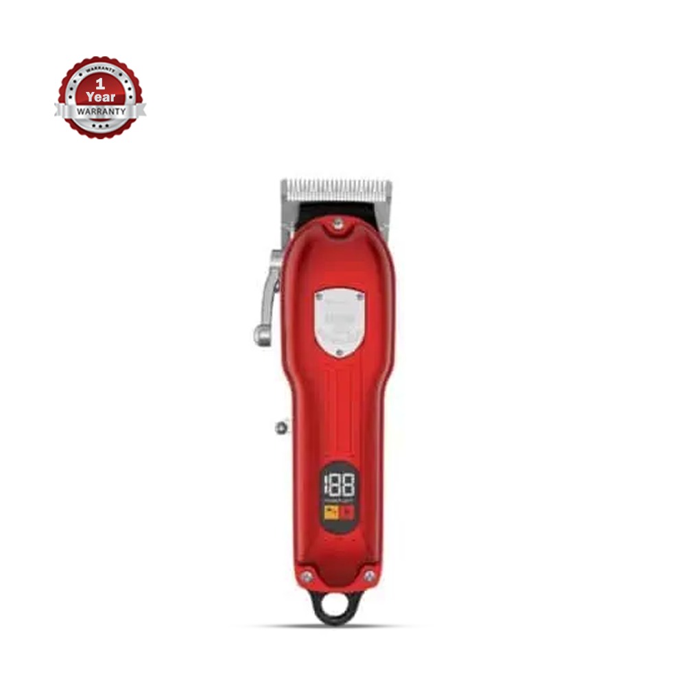 The Kemei KM-802 Hair Trimmer for Men is a compact and efficient grooming tool that can help you maintain your hair with ease. Its vibrant red color adds a modern touch to any grooming kit. The trimmer uses a powerful motor and sharp blades to provide a clean and precise cut every time. Its lightweight and ergonomic design make it easy to handle and maneuver during use, and it comes with adjustable comb attachments to help you achieve different hair lengths and styles. The trimmer's detachable and washable blades make it easy to clean and maintain, ensuring long-lasting performance. The trimmer is cordless and operates on a rechargeable battery, providing up to 60 minutes of continuous use on a single charge.