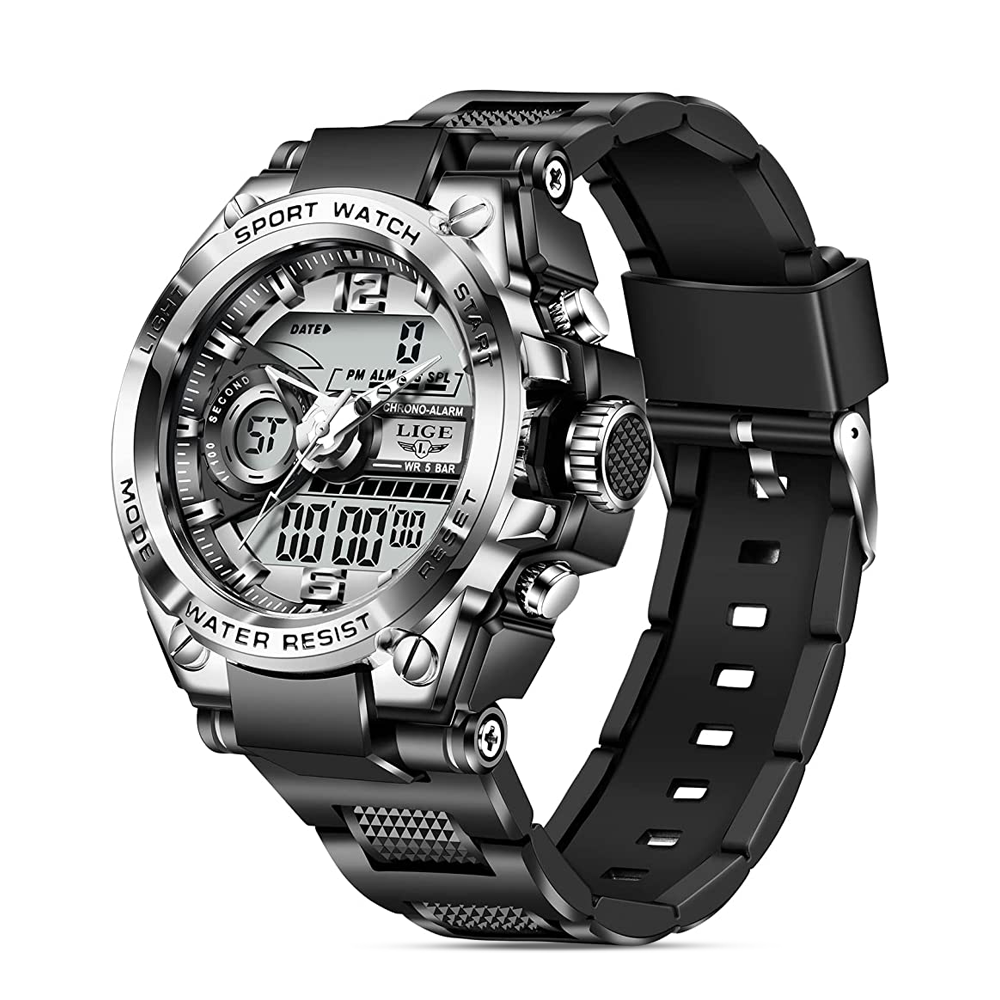 The Lige 892 Military Grade Sports Watch for Men in Black is a rugged and versatile timepiece designed to withstand the demands of an active lifestyle. This sports watch features a durable black case and strap, offering a sleek and understated look. Built with military-grade materials, it is highly resistant to impact, water, and other challenging conditions, making it suitable for outdoor activities and sports. The watch offers multiple functionalities, including a chronograph, date display, and luminous hands for easy readability in low-light situations. With its durable construction and reliable performance, the Lige 892 Military Grade Sports Watch for Men in Black is a dependable companion for those seeking a stylish and functional timepiece for their active endeavors.