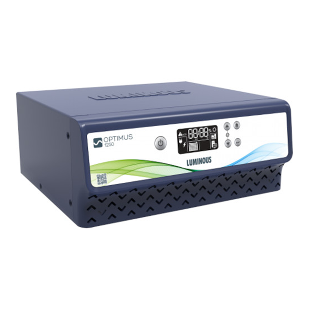 Luminous Optimus 1250 inverter comes with pure sinewave output technology that protects the appliances and increases their life. It is compatible with 80Ah to 220Ah batteries and requires an 18A maximum charging current for faster battery charging. This inverter features overcharging protection and short-circuit protection. It takes auto restart when detects overload conditions.