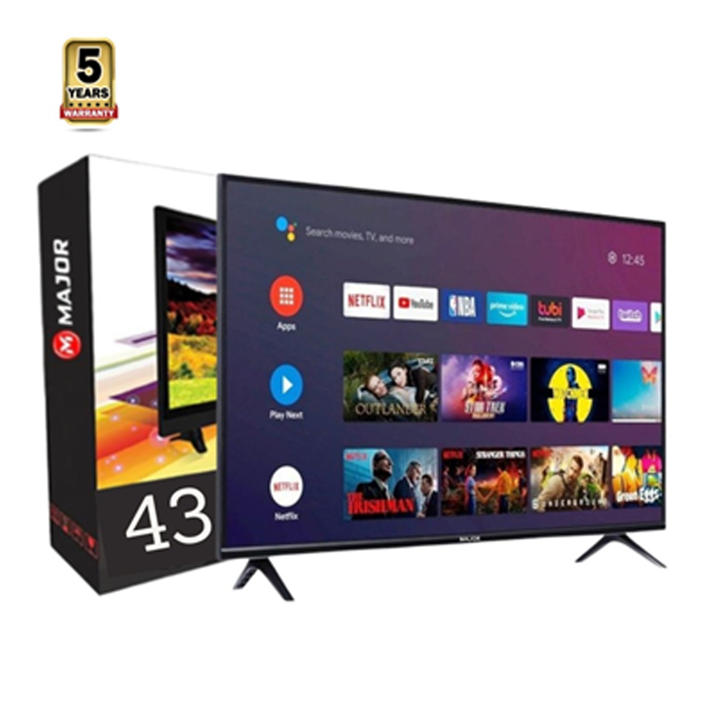 The Major Smart Android Double Glass TV is a high-quality 43-inch television with advanced features and impressive specifications With voice control, users can interact with their double-glass TV. It comes with the latest Android operating system version 11.0 built-in, offering a smooth and intuitive user experience. The screen resolution of 1920*1080 ensures crystal-clear images and vivid colors, while its ability to support FULL HD & 4k video formats allows you to enjoy high-quality content. Additionally, the TV comes with a 1-year panel replacement warranty and a 5-year service warranty, ensuring your peace of mind and long-term satisfaction with your purchase. Overall, the Major Smart Android Double Glass TV is a top-tier option for those seeking a high-performance television with cutting-edge technology and reliable support.